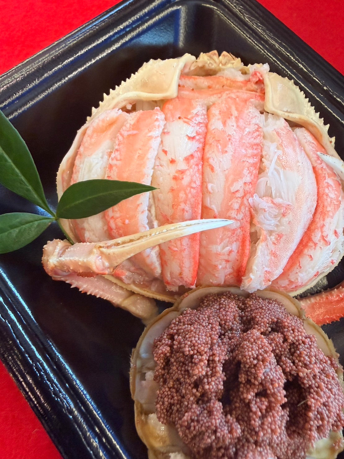 せこがには「外子」と呼ばれる卵と、甲羅の中にある「内子」を持つ雌の松葉がにです。漁期は短く12月末までの“期間限定”絶品冬の味覚です。