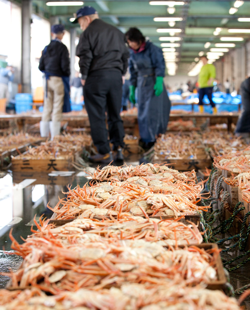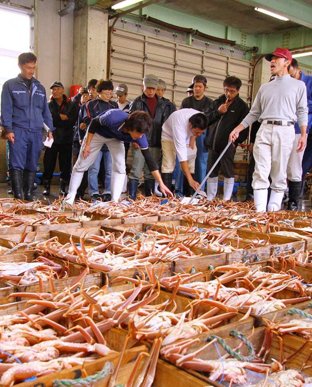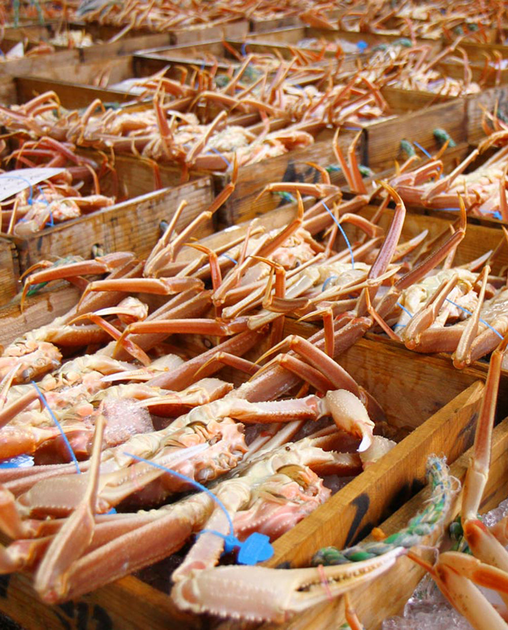 津居山漁港は城崎温泉から車で約5分。松葉がにの仕入には一方ならぬこだわりをもった当社・社長が自ら毎朝競り場に足を運び厳選された本物の松葉がにのみを直接仕入れています。